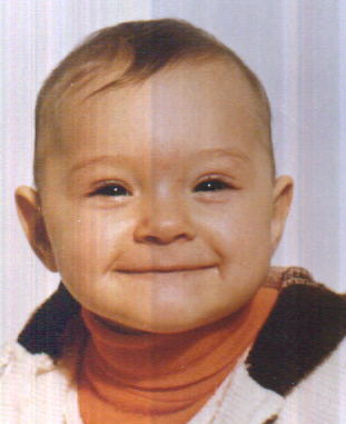 | Geboren bin ich am 1.8.1979, mit Kaiserschnitt, weil meine Herztöne schon schwächer wurden (ich hatte mir die Nabelschnur um den Hals gelegt); eine normale Geburt wäre nicht möglich gewesen, da ich ein zu großer Brocken war - im Gegensatz zu meiner späteren Zierlichkeit! | ![]() |